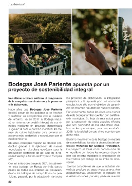 del entorno. Ya en 2017 la Bodega impul- ción ecológica. Su hoja de ruta actual pasa